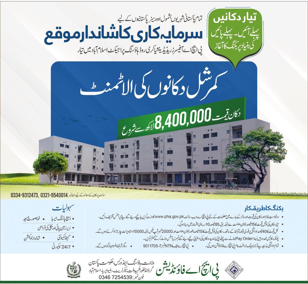 Construction of PHA-Maymar Towers in Karachi is first endeavor in this respect. PHAF has also initiated projects for provision of houses and open plots. The comfort and ease of allottees has always been the focus of PHAF, therefore, regional offices have also been established in Lahore and Karachi.